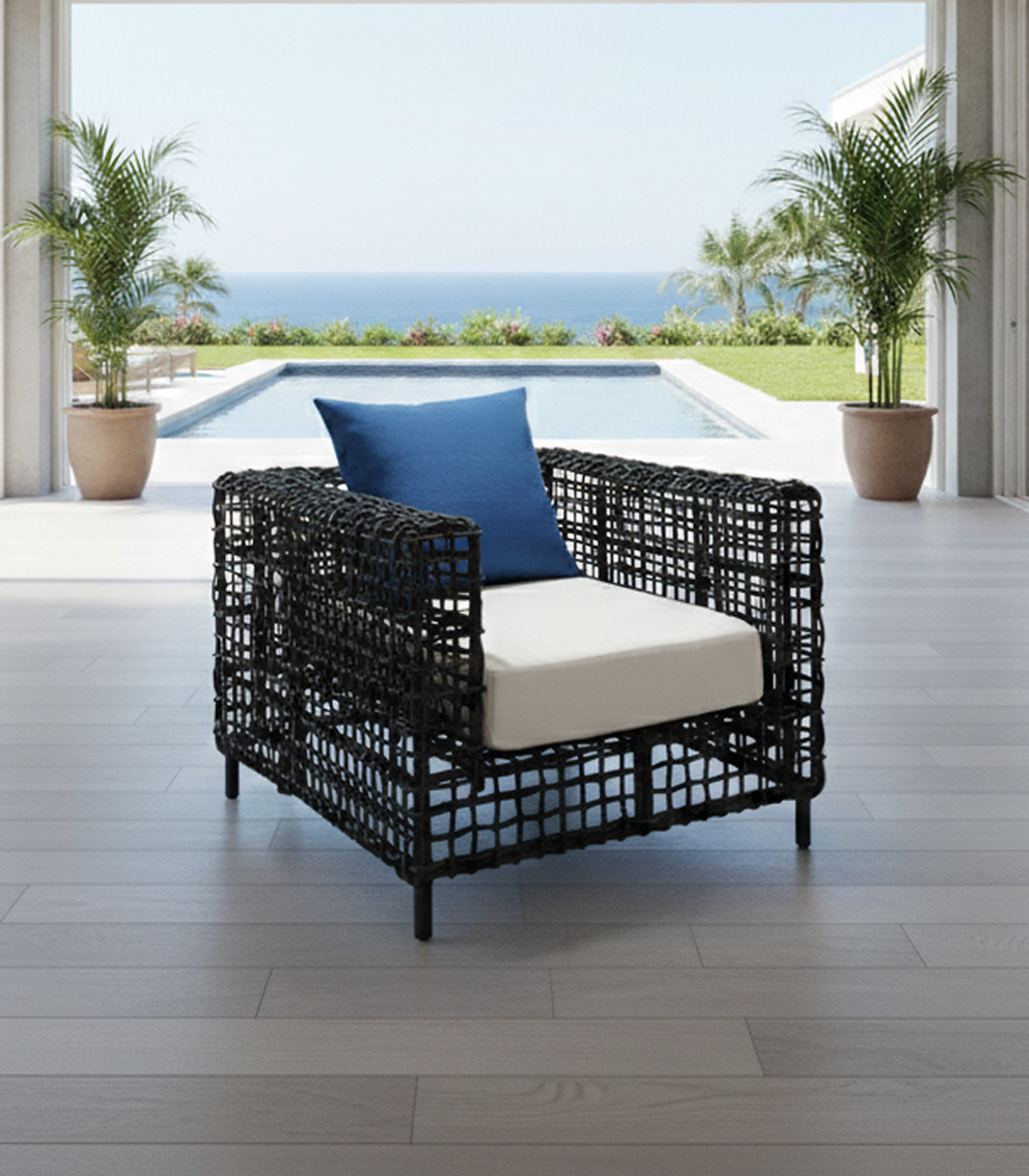 Materiales: Estructura de aluminio, tejido con rejilla sintética de alta calidad, cojineria con espuma de alta densidad.