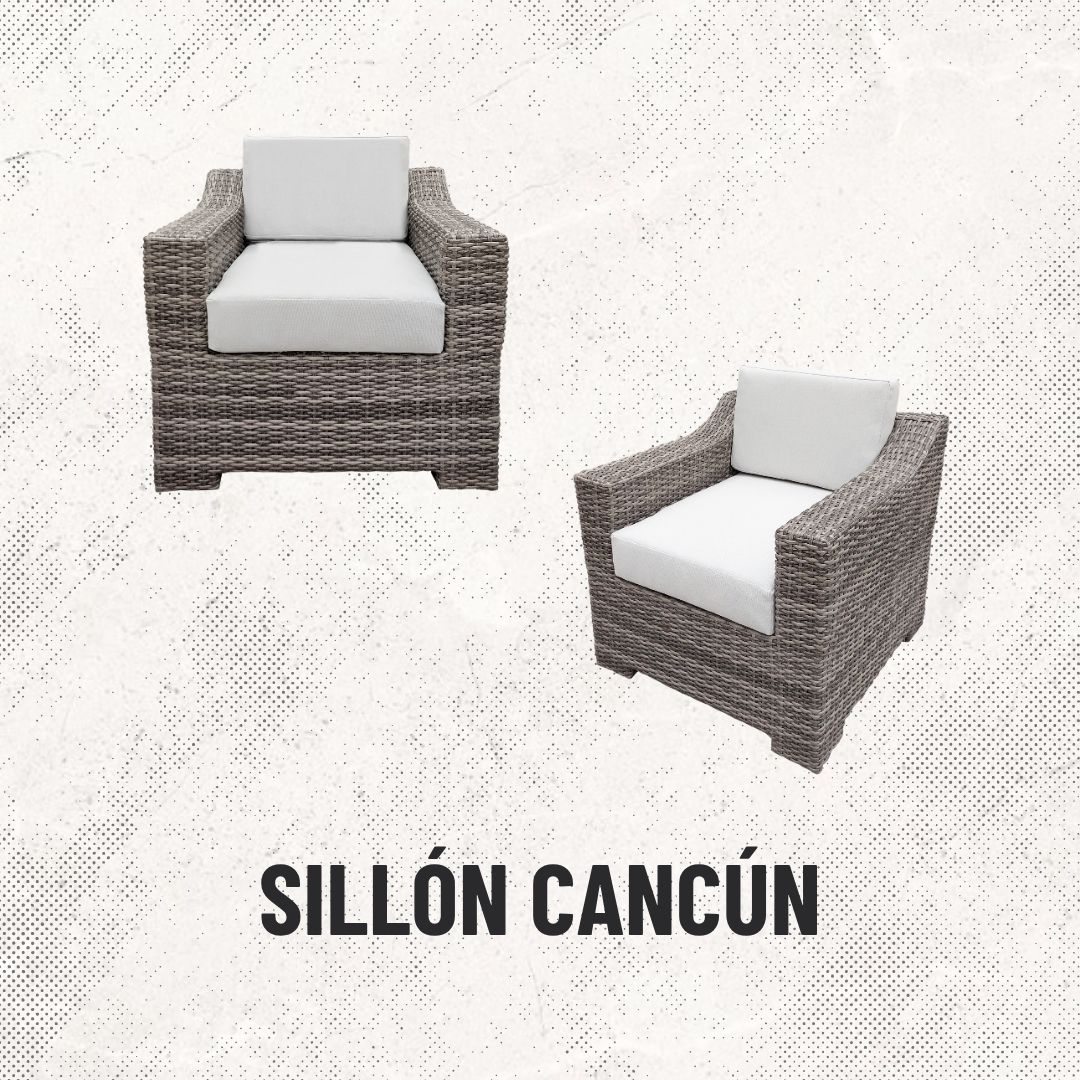 Armazón de aluminio, tejido con rejilla sintética, cojines en tela sumbrella, hule espuma de alta densidad.