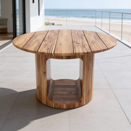 Materiales: Mesa redonda para 4 sillas, con cubierta y base de madera.