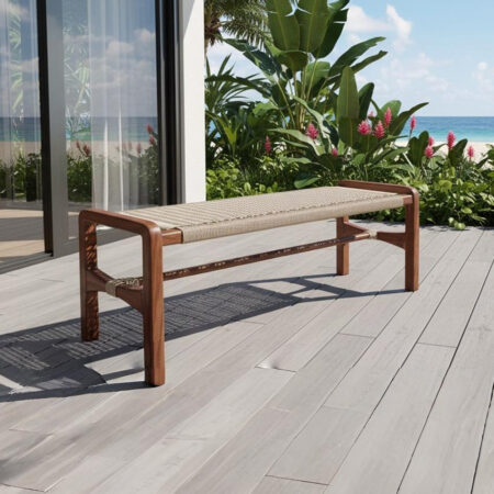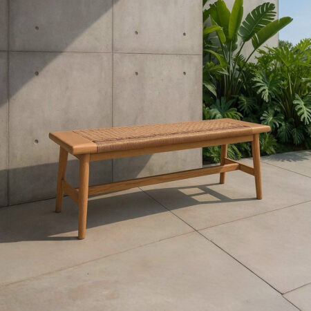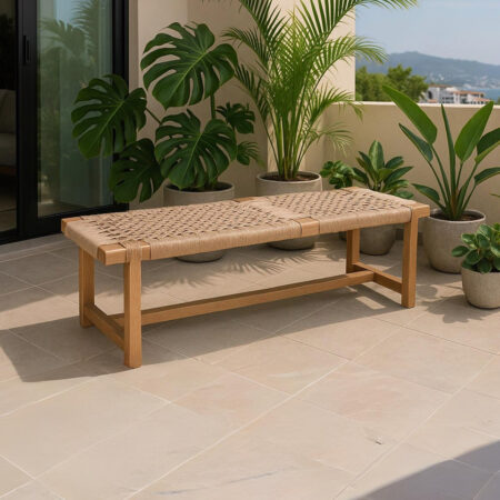 Materiales: Estructura de madera, tejido con rejilla sintética de alta calidad, cojineria con espuma de alta densidad.